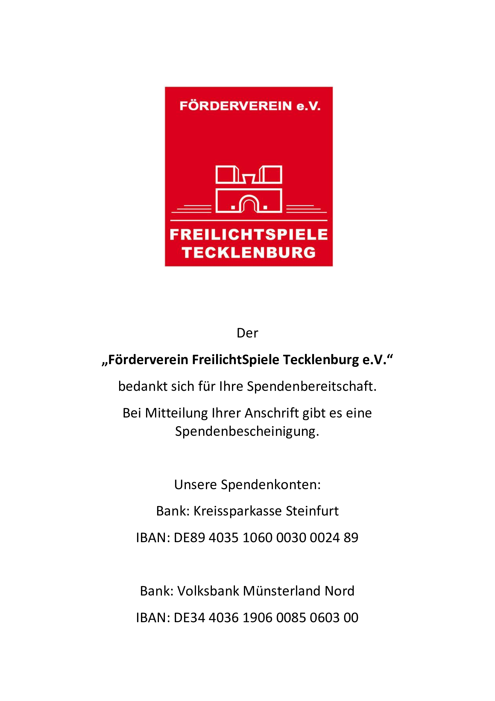 Wenn Sie „Deutschlands größtes Freilicht-Musiktheater“ finanziell und ideell unterstützen möchten, werden Sie Mitglied im „Förderverein FreilichtSpiele Tecklenburg e.V.“!